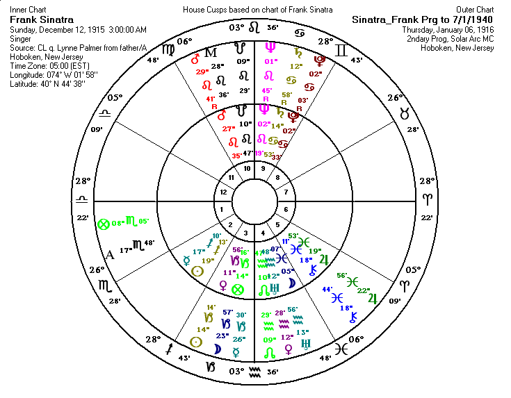 However, Venus, the ruler of his chart, is in class-conscious Capricorn, and weighed down by an opposition to Saturn. Being Italian-American gave Sinatra deep feelings of inferiority which fueled his need to make something of himself. When his progressed Venus conjoined natal Uranus in 1940, Sinatra had joined the famous Tommy Dorsey band, and girls started screaming and swooning during his love ballads.